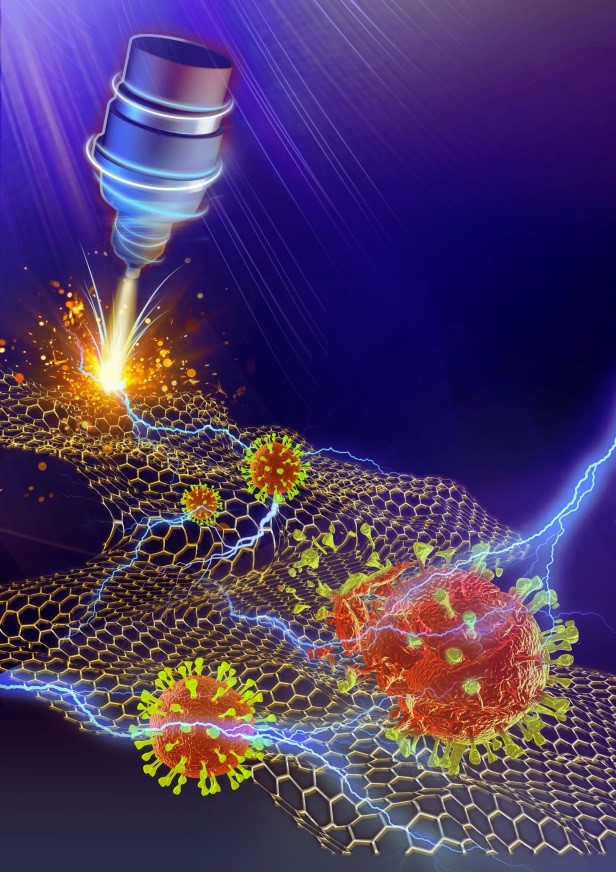 由严重急性呼吸综合征冠状病毒2(SARS-CoV-2)引发的2019年冠状病毒(COVID-19)大流行在全球范围内造成了大量的感染病例和人员死亡。但现有的抗病毒的材料和方法(金属、化学物质、高温和紫外线照射)虽可灭活病毒,但它们的毒性、昂贵的价格以及不便的操作性严重限制其推广和使用。普通石墨烯的光热效应赋予其良好的抗病毒能力,但是日常生活中的太阳光不足以诱导石墨烯产生消灭病毒的高温(110℃)。因此,研制能够在温和条件下有效、快速地灭活病毒的石墨烯材料在新冠大流行中具有广泛的研究价值。