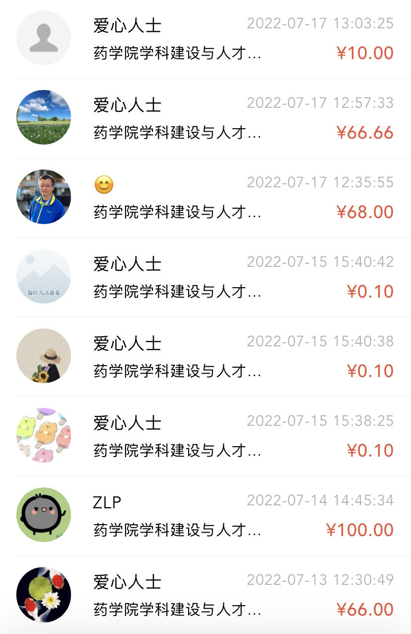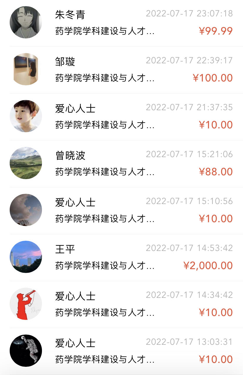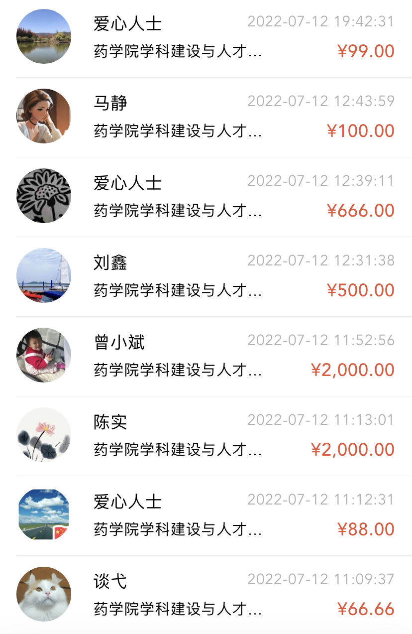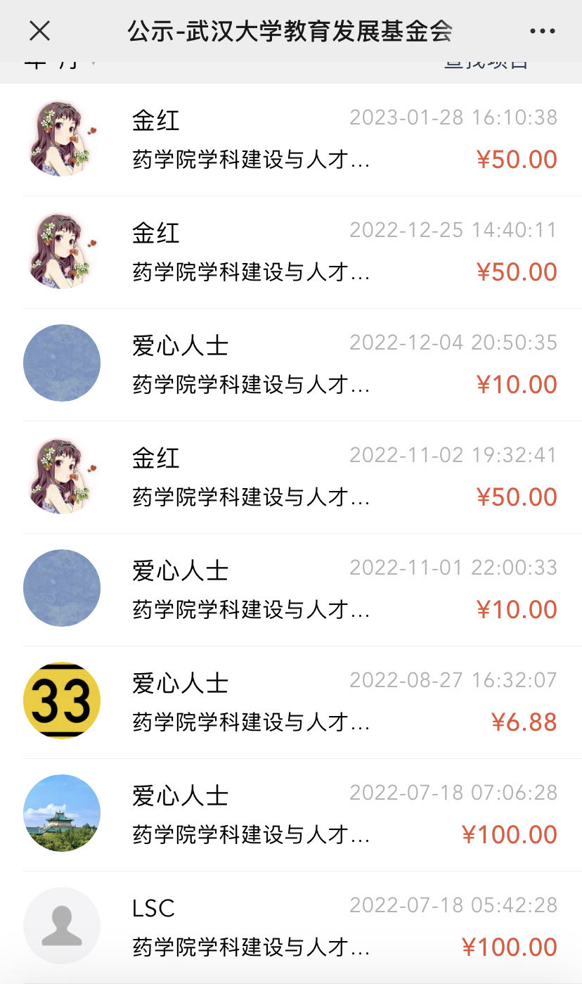bat365在线平台官网登录学科建设与人才培养基金自2022年7月成立至2023年2月,共收到捐赠33笔,共计100.853549万元。其中大额捐赠一笔:7月8日,bat365在线平台官网登录校友、中美华世通生物医药科技(武汉)股份有限公司董事长张发明和夫人蔡晓清向bat365在线平台官网登录捐赠100万元注入bat365在线平台官网登录学科建设与人才培养基金;小额捐赠32笔,共计8535.49元,明细附后。