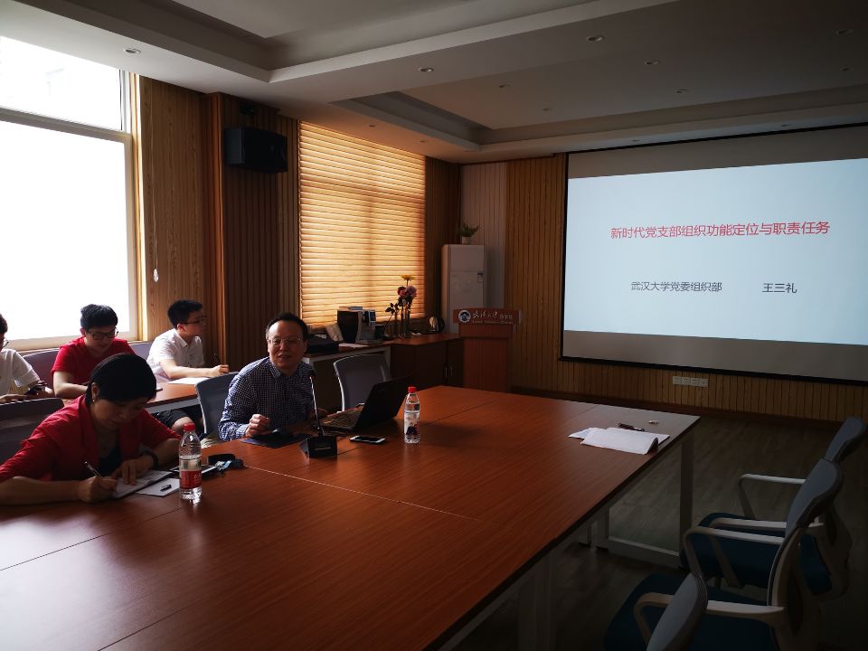 在这繁花似锦的五月,在这浓绿满荫的初夏,bat365在线平台官网登录于517日下午举办《做合格党员,建模范支部》培训活动,特邀学校党委组织部副部长王三礼做《新时代党支部组织功能定位与职责任务》报告,由学院党委书记吴艳主持,各党支部书记、委员和部分骨干党员参加了培训。