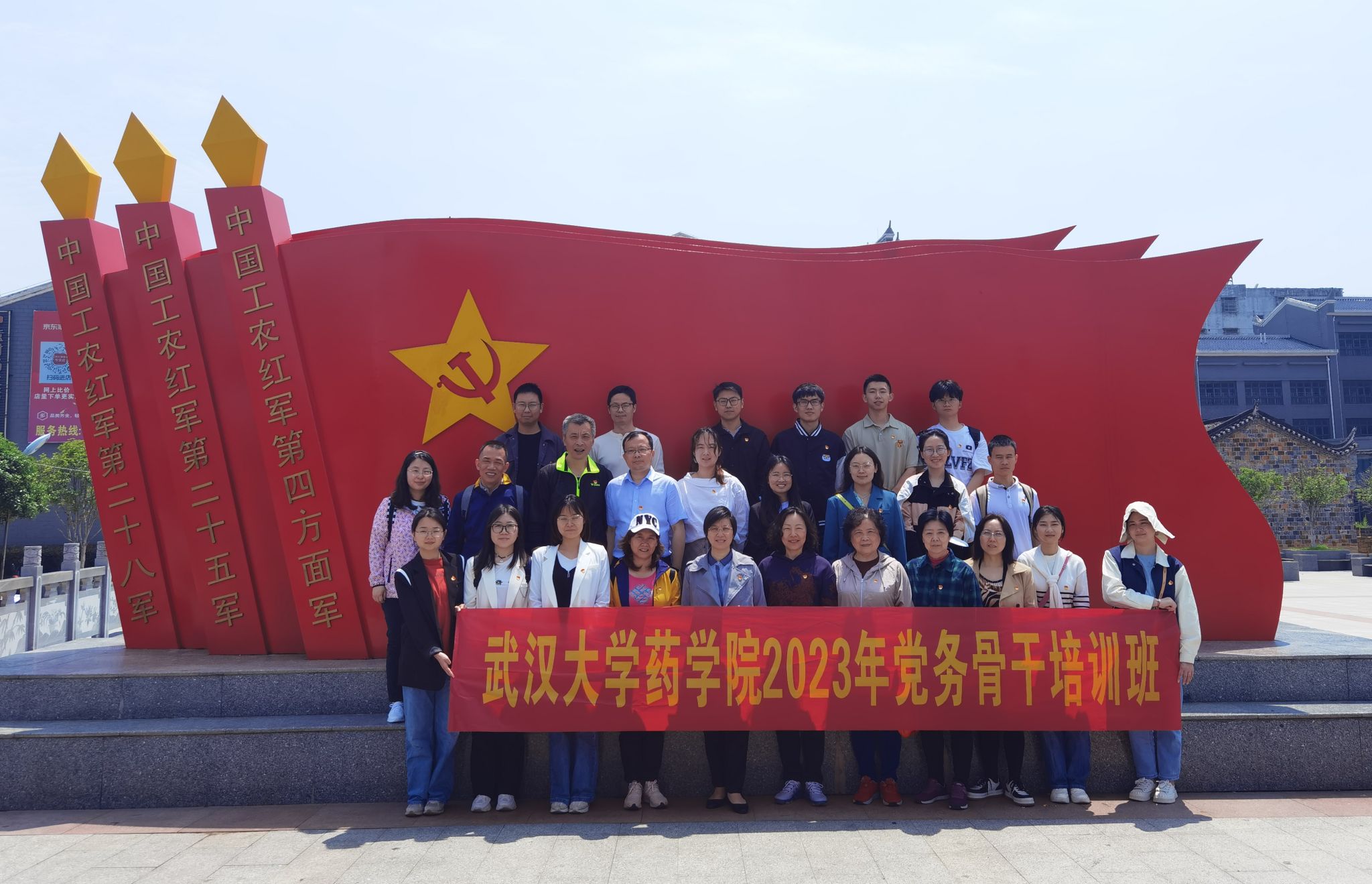 为深入学习贯彻习近平新时代中国特色社会主义思想和党的二十大精神,缅怀革命先烈,传承红色精神,激发党员骨干爱党爱国、干事创业的热情,2023年5月11日,bat365在线平台官网登录党委举办党务骨干培训班,党委书记吴艳带领学生、教职工、退休党支部党员骨干,赴全国烈士县、全国第一将军县——红安开展以“学思想、强党性、重实践、建新功”为主题户外联学活动。