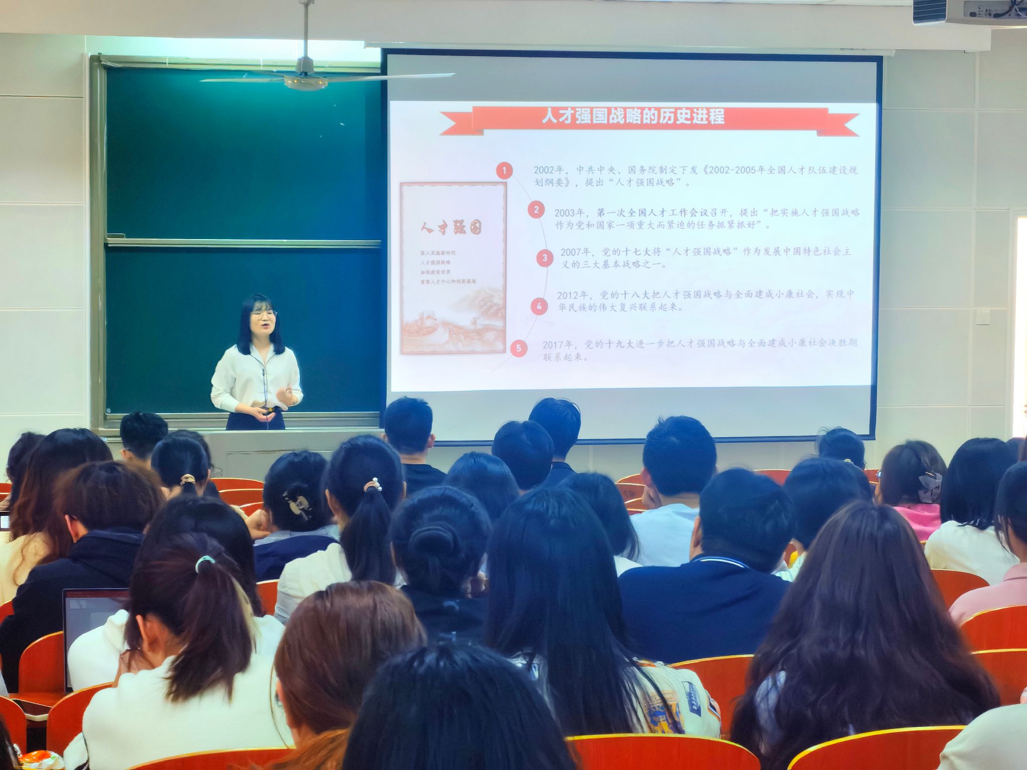 千秋基业,人才为本。乔红玉博士围绕“以 ‘人才梦’托起‘中国梦’”的主题,从人才强国战略的历史进程、党的十八大以来人才强国战略的实施成效、武大学子何为等三方面,系统地阐述了党的十八大以来,以习近平同志为核心的党中央深入实施新时代人才强国战略,推动新时代人才工作取得的历史性成就,为加快建设世界重要人才中心和创新高地,实现中华民族伟大复兴的中国梦提供坚实人才支撑;激励同学们树立远大理想、深耕专业知识、勇担历史使命、共筑强国之梦!