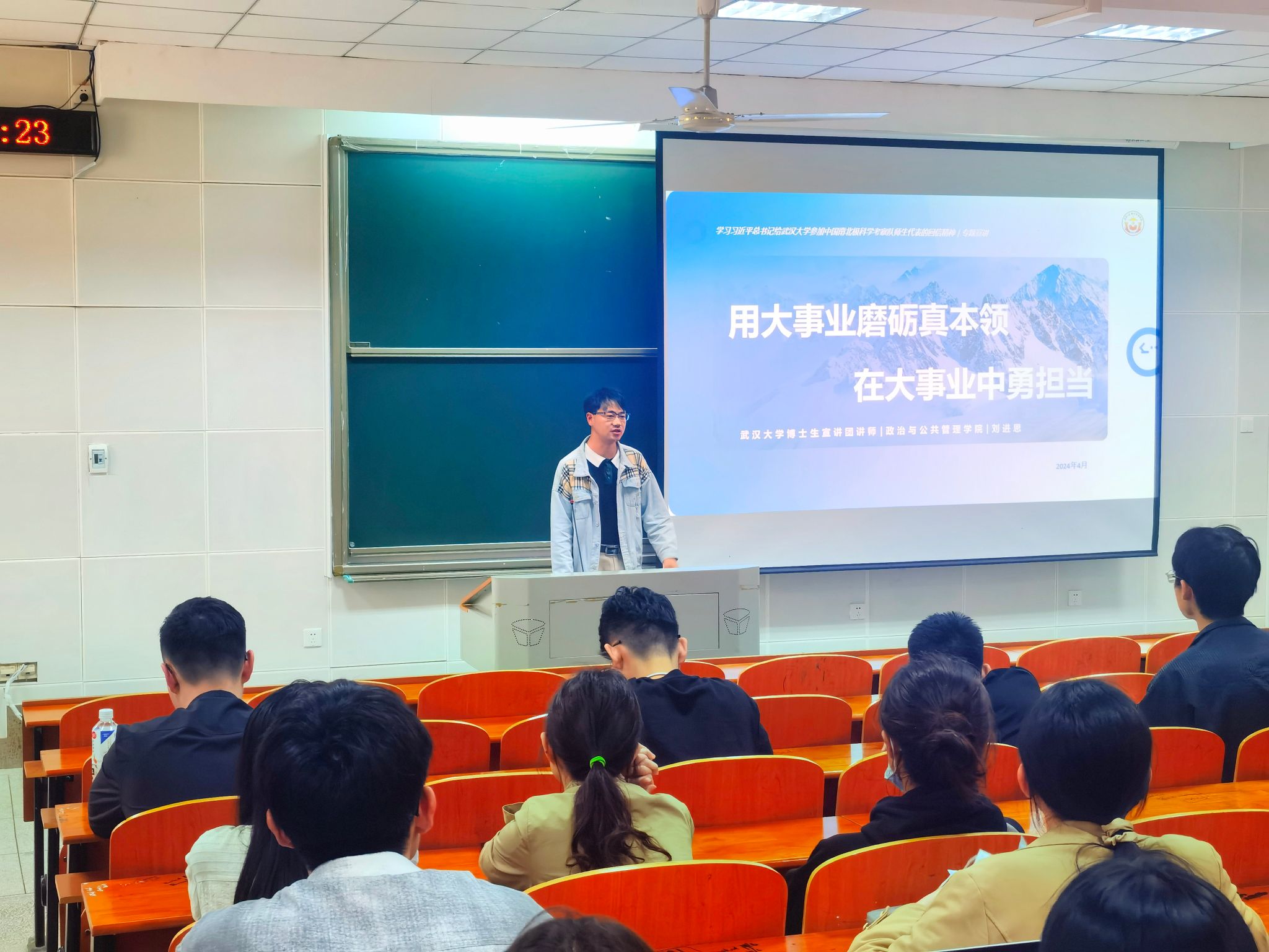 为持续深入学习贯彻党的二十大精神,巩固拓展学习贯彻习近平新时代中国特色社会主义思想主题教育成果,持续加强党员教育管理,提升党员教育培训质量,着力建设高质量党员队伍。4月19日,bat365在线平台官网登录党委、分党校特邀学校博士生宣讲团乔红玉、刘进思、黄彦智等三位讲师,为学院全体学生党员、第76期入党积极分子培训班和2024年上半年发展对象培训班学员进行专题宣讲。