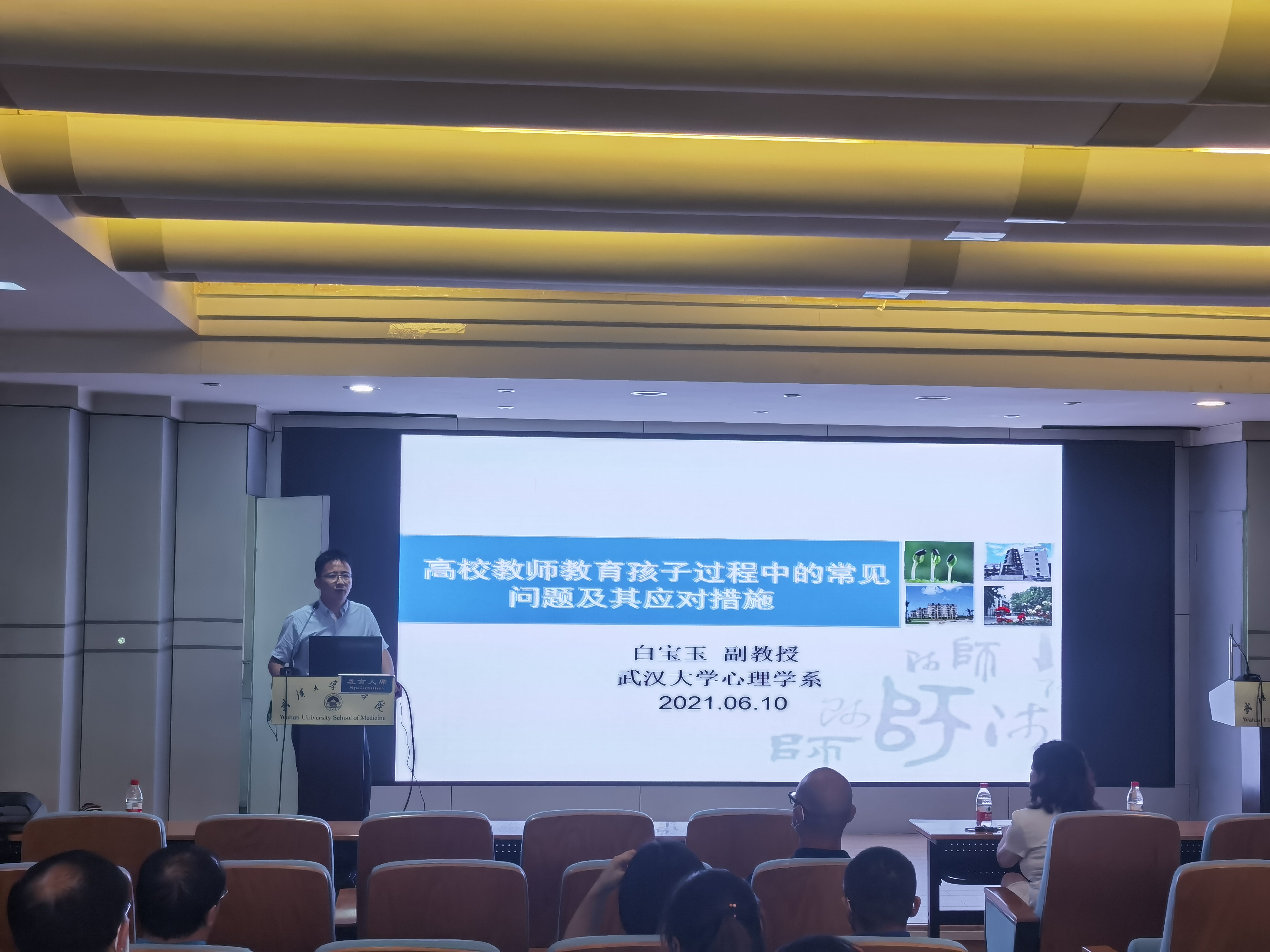 2021610日下午300在医学部三楼会议室我院工会承办了《高校教育孩子过程中的常见误区及其应对措施》心理讲座,以此促进教职工身心均衡发展,推动和谐家园、和谐校园建设。该讲座受到老师们的热烈欢迎, 40余人参加了讲座。