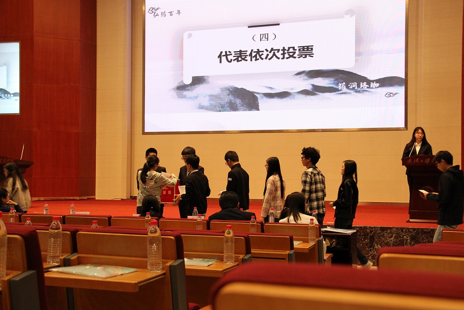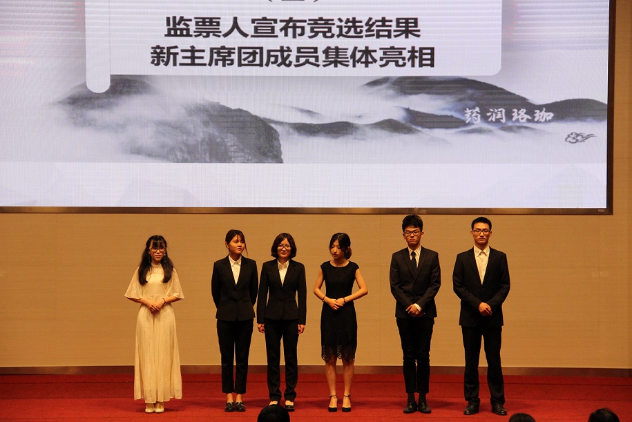 大会选举产生了新一届分团委和学生会主席团。在主席团候选人竞选演讲和现场答辩中,各位候选人先后登台、各展其能,进行了精彩的个人展示与演说,展现了新一届团学干部的自信与实力。经过大会选举,张新怡、张可頔、胡晓瑜、杨彪、刘思捷和陈小雪6位同学当选为新一届主席团成员。在悠扬的团歌和热烈的掌声中,bat365在线平台官网登录第十四次团员学生代表大会圆满落下帷幕。
