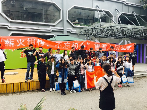 5月3日上午,在五四青年节即将到来之际,为了切实增强团员先进性和光荣感,进一步激励同学们坚定理想信念。我院于武汉市青年之家成功举办了“薪火相传,不忘初心”重温入团仪式活动。活动由我院54名优秀团员代表共同参与。