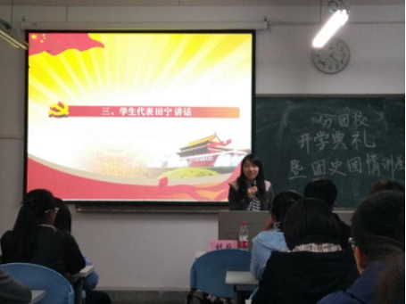 学生代表田宁随后上台进行了讲话,内容真切。她提出,刚刚踏入大学校园的新生们其实十分迷茫,因为一下子失去束缚,新生们也一并失去了生活的方向,而团校正是他们调整自身态度,深入了解大学生活最好的途径。