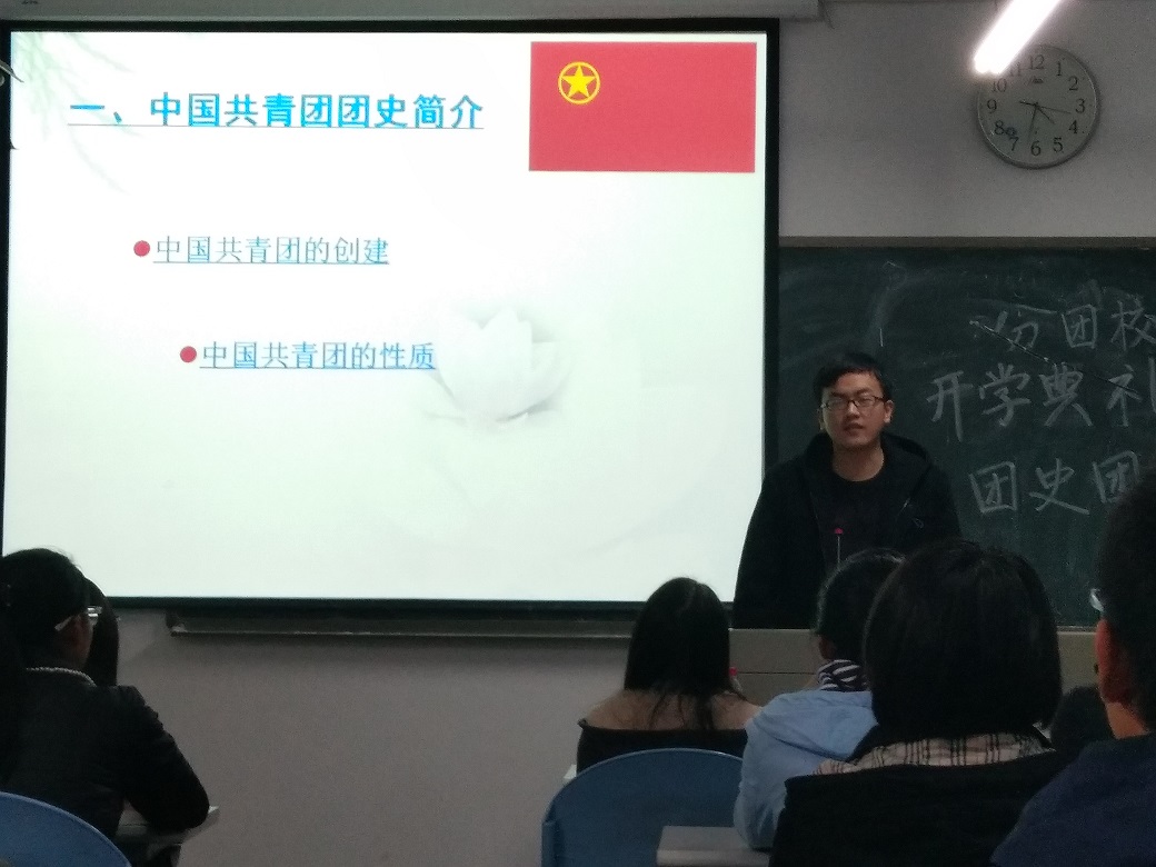 当天下午4点10分,活动正式开始。在齐声唱了团歌之后,叶景佳团副首先上台简单介绍了团校活动的内容,她指出,团校内容并非枯燥无味,团校的内容都是负责人们精心准备的,旨在让学员在轻松愉悦的氛围中既学习党的先进思想以及相关知识,又能够锻炼自我,学到更多对自己有益的事物。