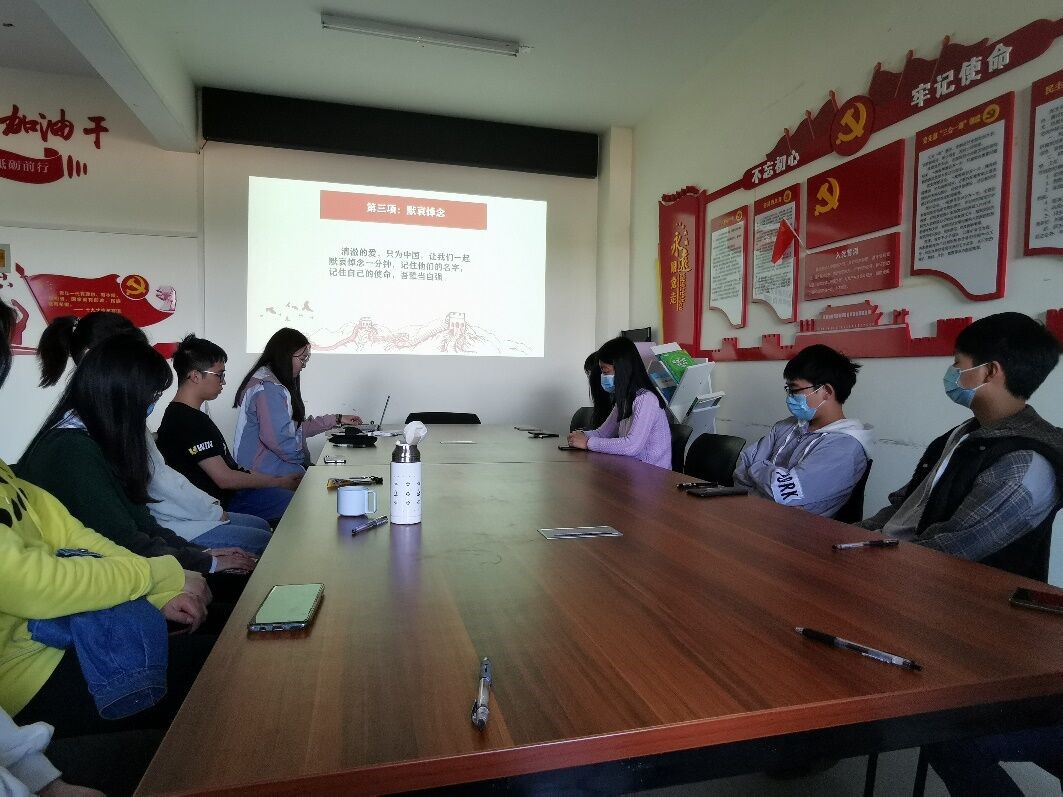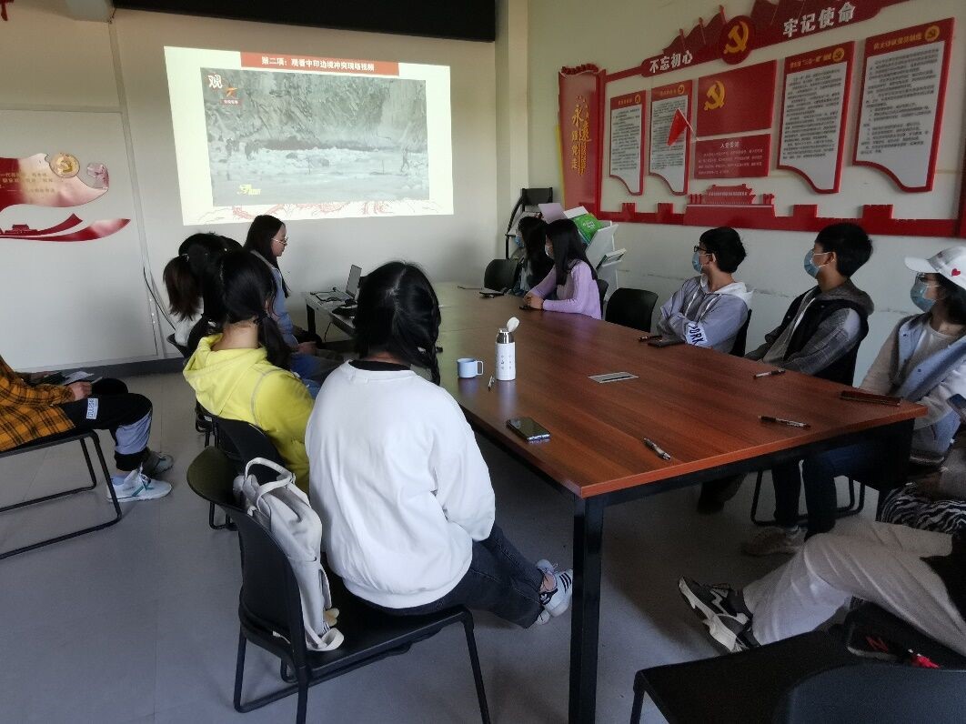 在宣传委员张琨的主导下本次活动从合唱共青团团歌中开始,同学们在张琨同学的详细讲述中大致了解了此次边境争端事件的来龙去脉,在观看视频后进一步详细知晓了事件及其影响。在前出交涉和激烈斗争中,团长祁发宝身先士卒,身负重伤;营长陈红军、战士陈祥榕突入重围营救,奋力反击,英勇牺牲;战士肖思远,突围后义无反顾返回营救战友,战斗至生命最后一刻;战士王焯冉,在渡河前出支援途中,拼力救助被冲散的战友脱险,自己却淹没在冰河之中。同学们无不为印度违背承诺感到愤怒,更为中国军人流血流汗的奉献与付出而感动。