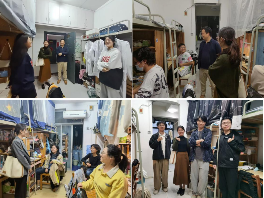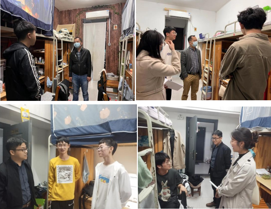 为践行“一线规则”,bat365在线平台官网登录领导、班主任、烛光导航师、辅导员等定期走访学生寝室,了解学生学习生活状态,指导学生解决学习、成长困惑以及生活困难。