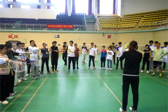 在正式运动之前,体育部张雨纯教练向大家进行了羽毛球基本教学,从握拍手法、击球位置再到挥拍姿势,张教练详细讲解了打羽毛球的基本动作要领,并与到场师生进行互动,示范教学。